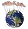 The golden Orb (the world) remains under his destructive grip, making it bleed with war, while the upside-down cross, the church, is at his feet.